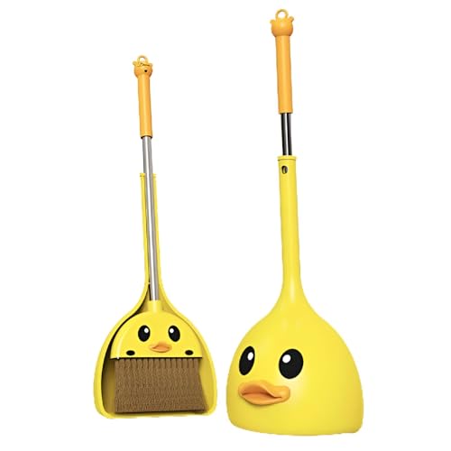 Generic - مجموعة مكنسة للصغار جذابة، مكنسة بلاستيكية متينة مع جاروف متناسق ومقبض مريح للصغار ملائمة للبيت، مجموعة ألعاب تعليمية تجمع بين المرح والنظافة، تصميم بطة صفراء كرتونية