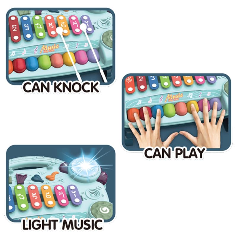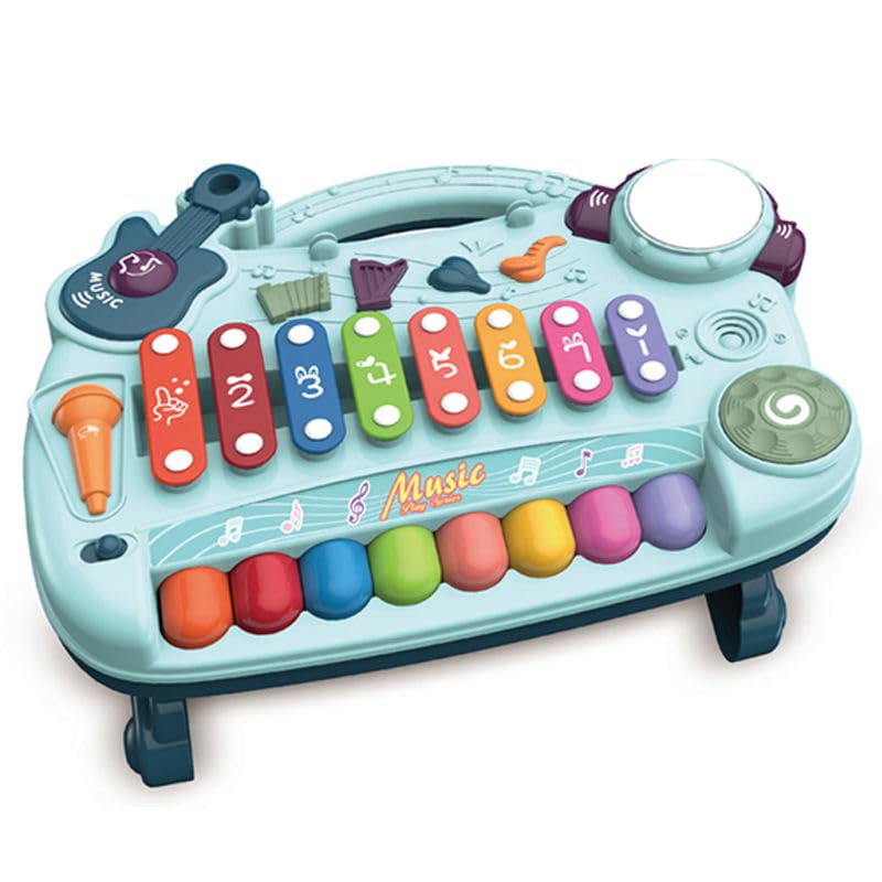 Generic - Children's Musical Piano Toy, Multifunctional Xylophone, 8 Keys, 4 Music Modes, Light Blue, 34x27x15.8cm