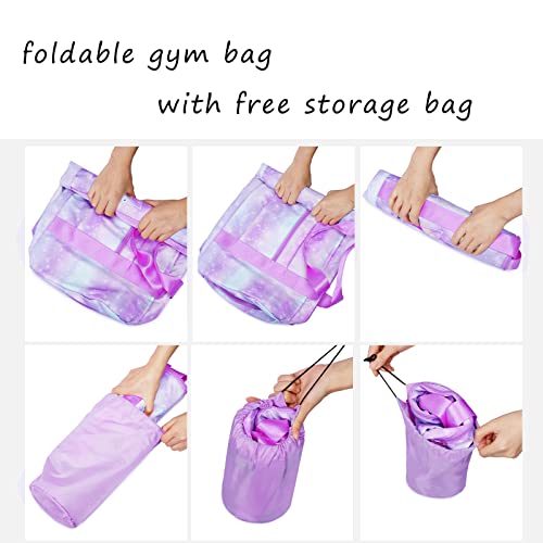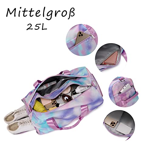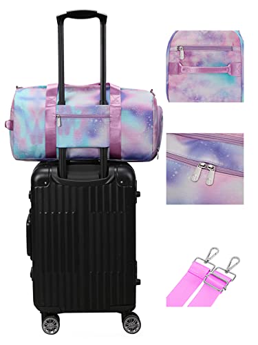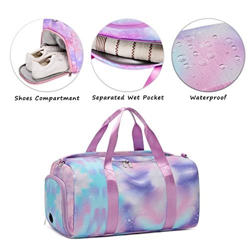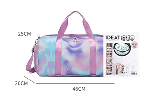 EUYIFET - شنطة رياضية للاطفال البنات والسيدات سفر مقاومة للماء تدريب للرقص والجمباز مع جيب للحذاء مبللة مع حزام كتف بالوان قوس قزح لعطلة نهاية الاسبوع نمط 2 البوليستر