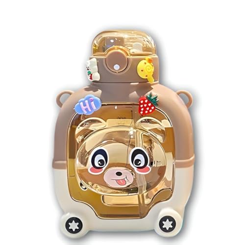 Generic - Children's Water Vessel - Adorable Large Capacity Water Bottle with Straw, Portable and BPA-Free for School, Shopping, and Active Kids (Model 1 Brown)