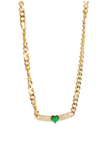 Generic - عقد من الذهب الصيني مع دلاية من الزركونيا وقلب زركون اخضر عالي الجودة ومقاوم لتغيير اللون