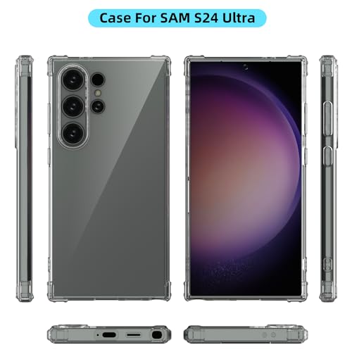 - Tailored, Ultra transparent flexible TPU Shockproof case for Samsung Galaxy S24 Ultra.