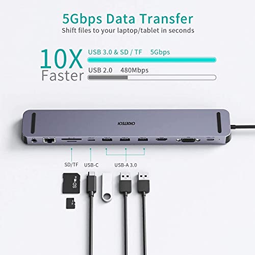 CHOETECH - CHOETECH 11-in-1 USB C Docking Station with 100W PD, 4K HDMI and RJ45 Ethernet