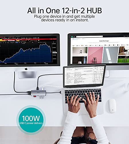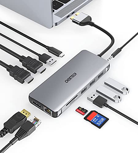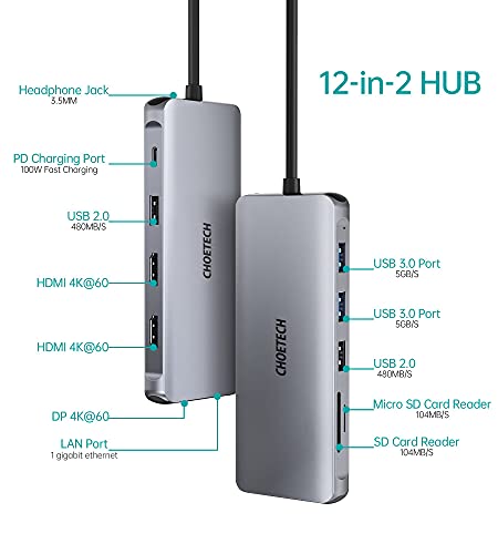 - Choetech HUB-M25 12 In 2 Laptop USB C Docking Station Dual Monitor 4K@60Hz Triple Display
