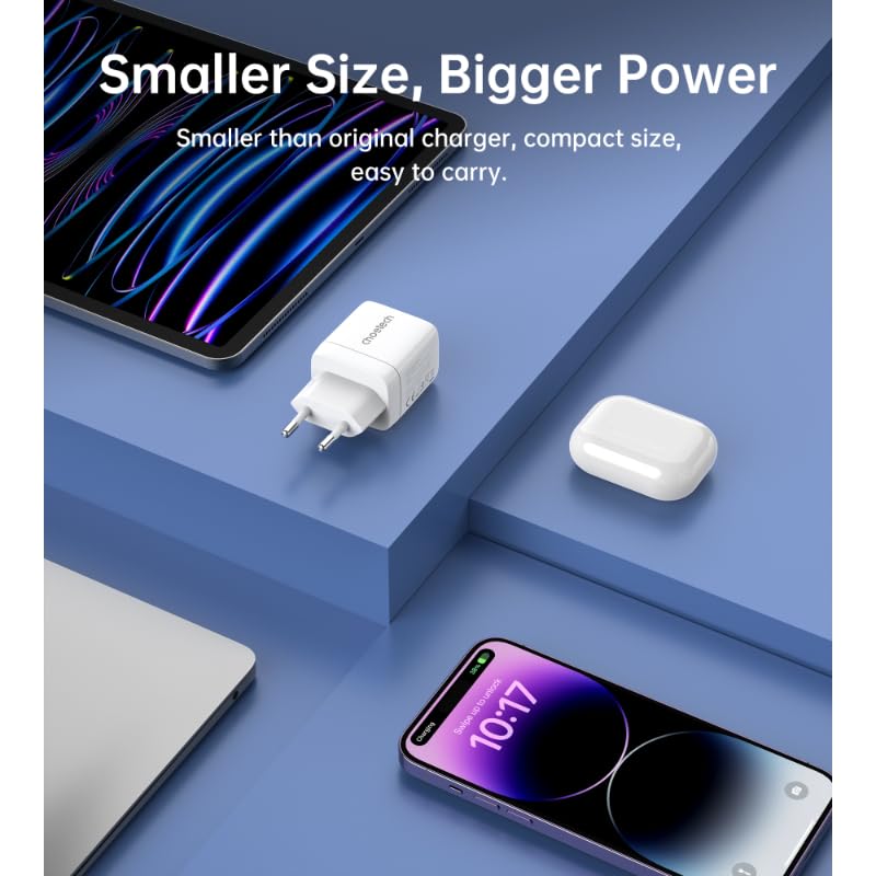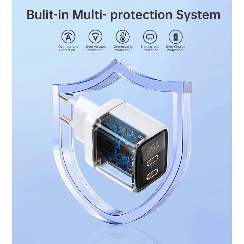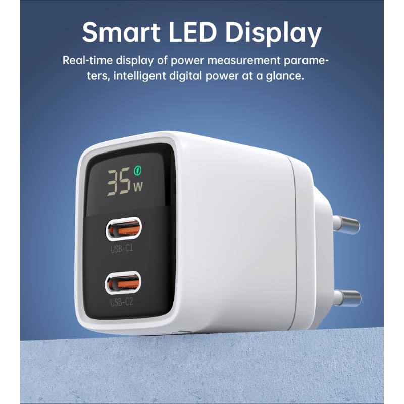 CHOETECH - Choetech NexGen PD6051 35W Dual USB-C GaN II Fast Charger, Smart Led Dispaly, Universal Compatibility With Phone, Tablets & laptops - White
