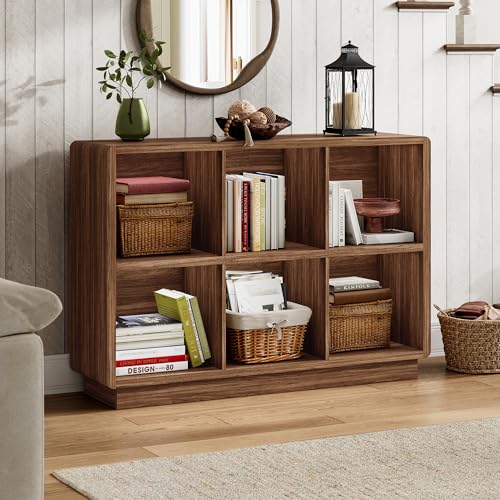- 【Minimalist & Modern Style】This 6-cube storage bookcase features simple lines and a wooden frame design, combined with brown walnut wood grain, which is practical and enhances modern beauty
