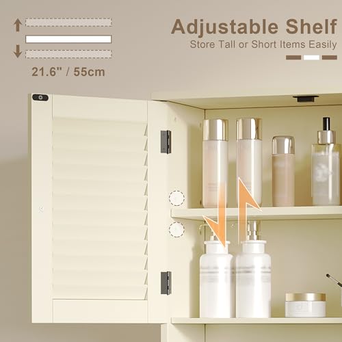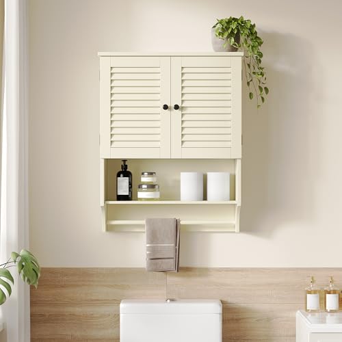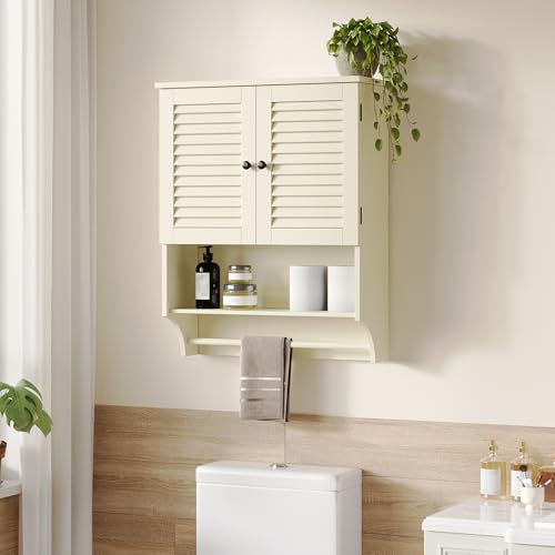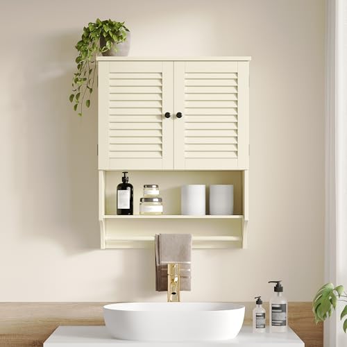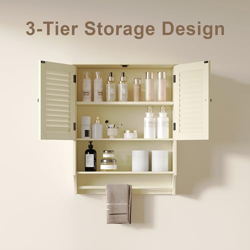 ChooChoo - ChooChoo Bathroom Wall Cabinet with Towels Bar, 23.6" L x8.9 W x29.3 H MDF Material Medicine Cabinet, 2 Doors Over The Toilet Space Saver Storage Cabinet with Large Space, Cream Yellow