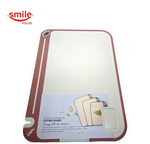 Smile House - Chopping Cutting Board, Non-Slip Silicone Grips with Side Ruler, Knife Sharpener and Grinding Dots (Assorted Colors) (Large 30x40)