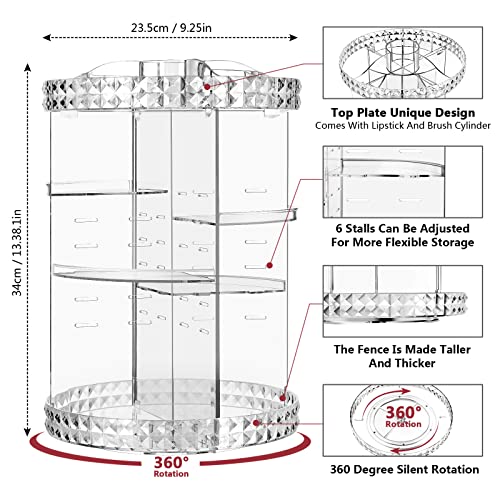 - 💎【LARGE CAPACITY】Measures 13.4 inch in height and 9 inch in diameter (base) when assembled.6 adjustable layers can adjust to accommodate all your cosmetics in different size and height.While achieving a small size, it has more storage space, and the top area can also store makeup brushes, lipsticks and more.