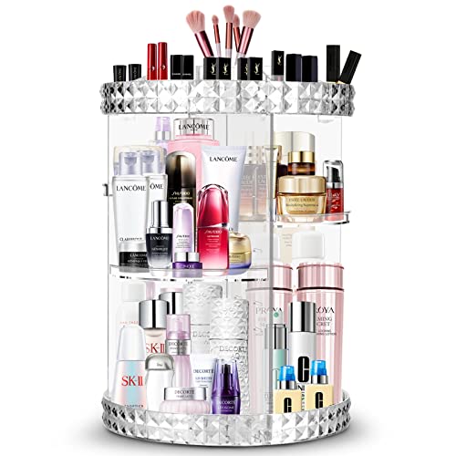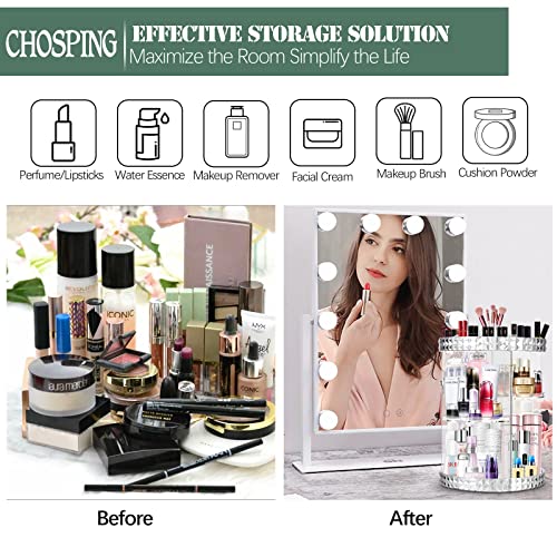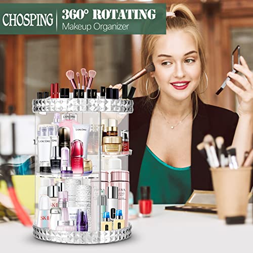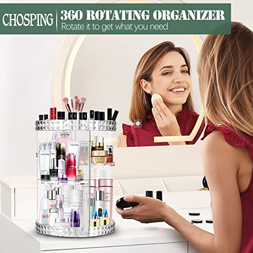 chosping - chosping Makeup Organizer 360-Degree Rotating Cosmetic Storage Box, Organizador De Maquillaje, Cosmetics Display Case, Fits Jewelry, Brushes, Perfume, Lipsticks and More,Acrylic Clear A