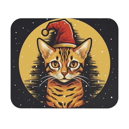 Generic - لوحة ماوس مانعة للانزلاق للألعاب والمكتب بتصميم قبعة سانتا على شكل قطة بنغالية لعيد الميلاد، حصيرة مكتب ناعمة ومانعة للانزلاق للمكتب والألعاب، لوحة ماوس متينة - 285