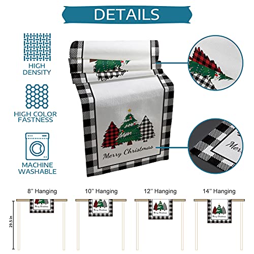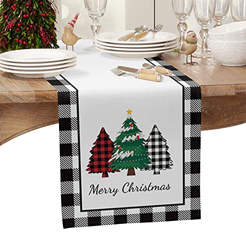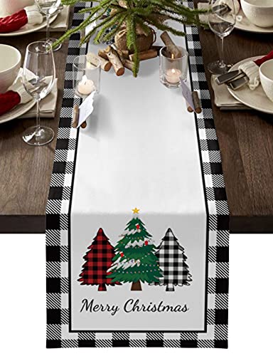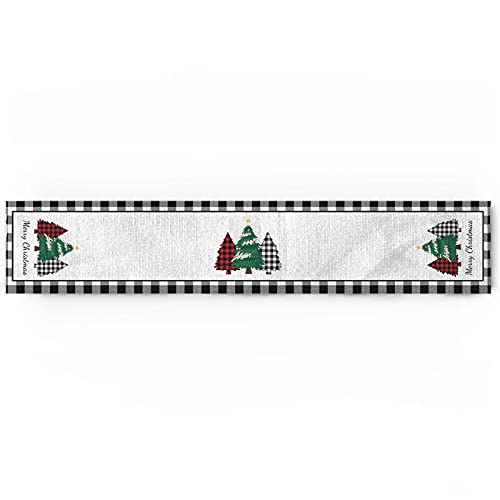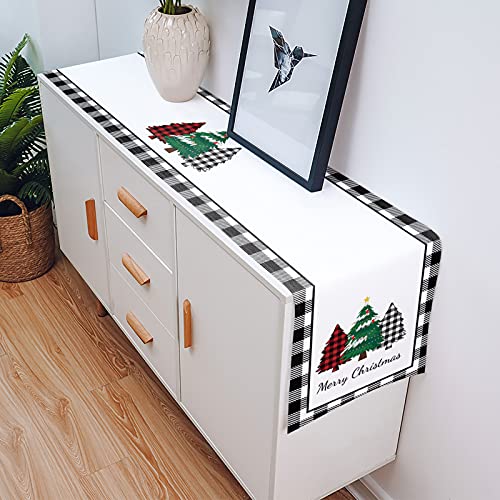 Daleng - Christmas Buffalo Tree Table Runner 13 x 72 inch Merry Christmas Tree Black White Buffalo Plaid Table Runner Non-Slip Dresser Scarves for Christmas Decorations, Party, Dinner and Gatherings, 1 Pack