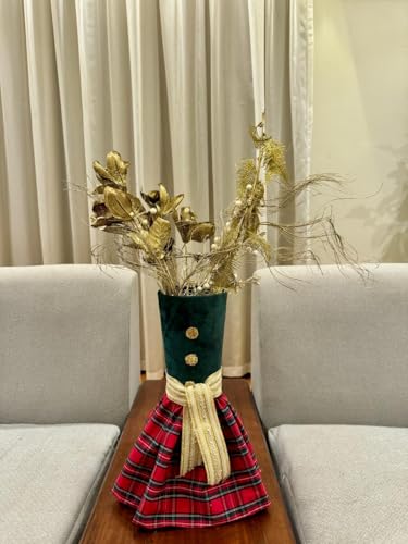 - ELEGANT DESIGN: Black vase with festive red plaid pattern and decorative gold buttons, perfect for holiday home décor and Christmas celebrations