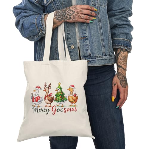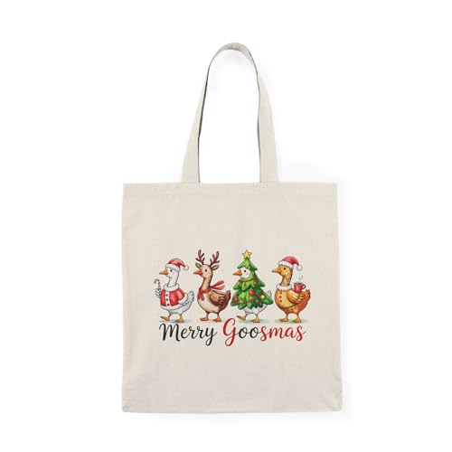 Generic - حقيبة قماش بسحاب بتصميم بط مضحك للكريسماس – شنطة قطنية احتفالية صديقة للبيئة، مثالية للهدايا والتسوق في موسم عيد الميلاد Canvas Tote Bag With Zipper-990