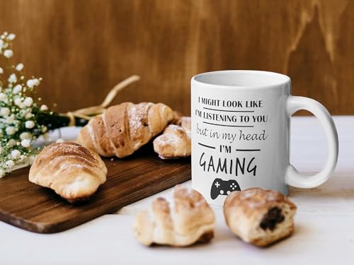 Generic - هدايا أكواب عيد الميلاد للرجال والنساء - بطبعة «in My Head I'm Gaming» - للاعبي ألعاب الفيديو للاعبين البنات والأولاد سعة 325 مل من السيراميك آمن للاستخدام في غسالة الصحون فضي