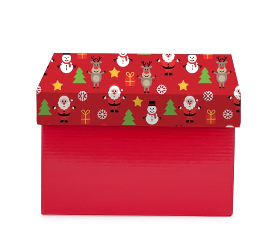 Generic - Christmas Gift Box with Festive Pattern, Red Storage Container with Santa, Reindeer, Snowman Design, Holiday Decorative Present Organizer size(25x18x9).