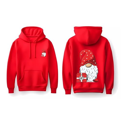Generic - Christmas Gnome Hoodie, Red Cotton Blend with Festive Print, Winter Holiday Theme Size (M)