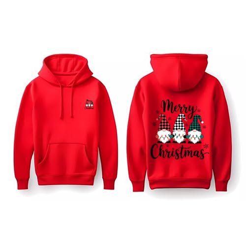 Generic - Christmas Gnome Hoodie, Red Cotton with Holiday Print, Merry Christmas Design Size (6-9Y)