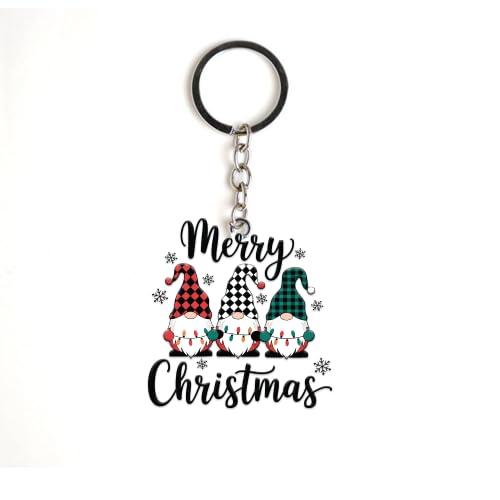 Generic - سلسلة مفاتيح جنوم للكريسماس، تصميم احتفالي للعطلات مع نمط منقوش بافالو، نص عيد ميلاد سعيد، ديكور شتوي احمر واخضر