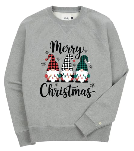 Generic - Christmas Gnome Sweatshirt, Grey Cotton Blend, Merry Christmas Design with Buffalo Plaid Gnomes, Holiday Winter Pullover Size (S)