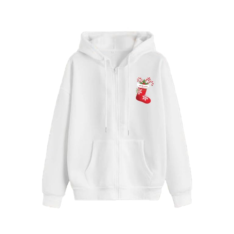 Generic - Christmas Holiday Hoodie, White Cotton Pullover Sweatshirt with Festive Stocking Design, Winter Casual Wear(S)