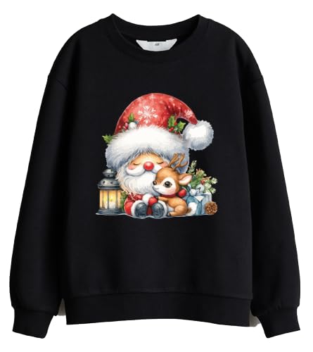 Generic - سويت شيرت عطلة الكريسماس، بلوفر قطني اسود مع طباعة سانتا وغزال، تصميم احتفالي الشتاء مقاس (XL)