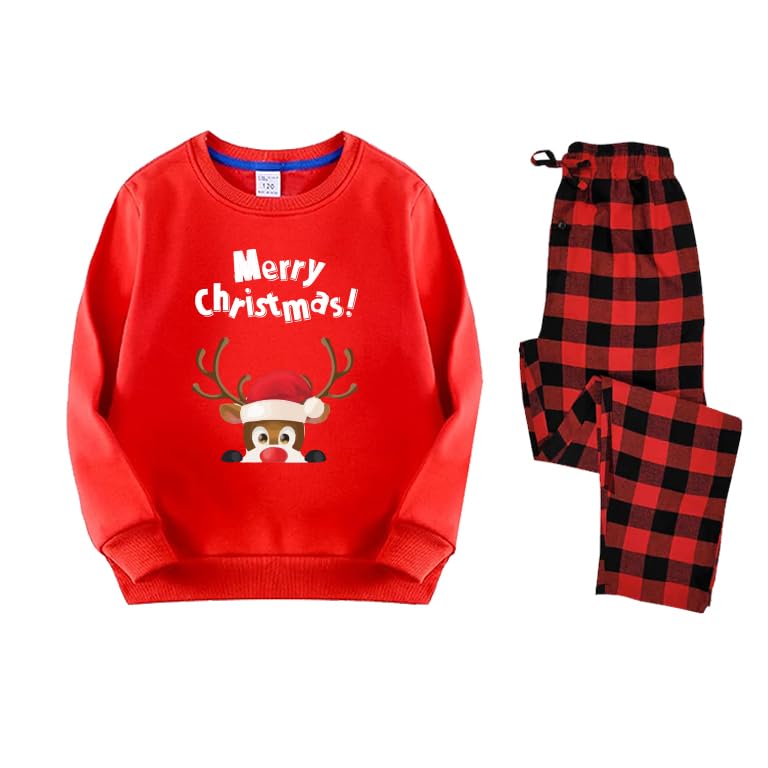 Generic - Christmas Pajama Set, Merry Christmas Reindeer Sweatshirt withPlaid Pants, Red and Black, 2-Piece Size (S)