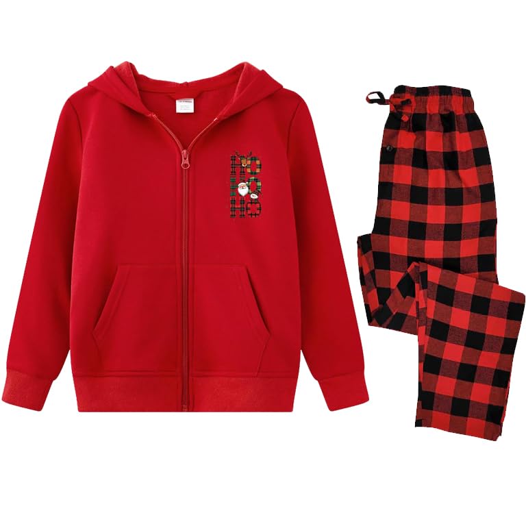 Generic - طقم بيجامة للكريسماس، هودي أحمر وبنطلون بنقشة مربعات حمراء، 2 قطعة بطابع العطلات، مقاس M