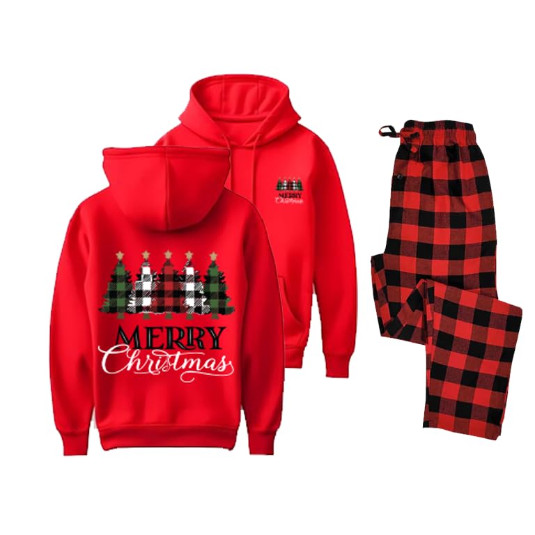 Generic - Christmas Pajama Set, Red Hoodie with Merry Christmas Print and Plaid Pants,Holiday Loungewear, Winter Sleepwear Size(3XL)