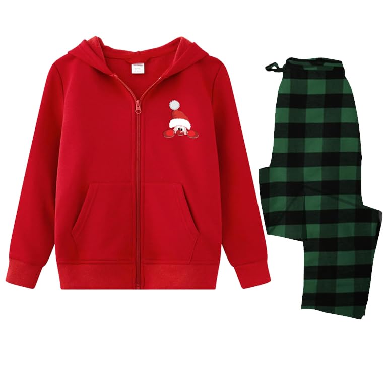 Generic - Christmas Pajama Set Red Hoodie with Santa Embroidery, Green Plaid Pants, 2-Piece Size (3XL)