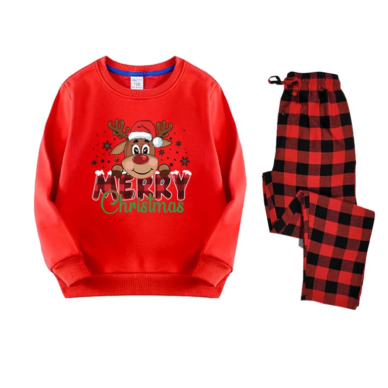Generic - Christmas Pajama Set, Red Reindeer Sweatshirt with Plaid Pants, Merry Christmas Theme Size (S)