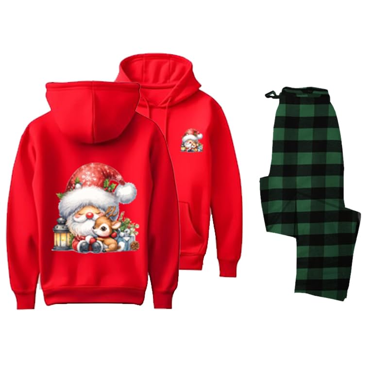 Generic - Christmas Pajama SetRed Hoodie with Santa PrintGreen Buffalo Check Pants Holiday Theme(3XL)