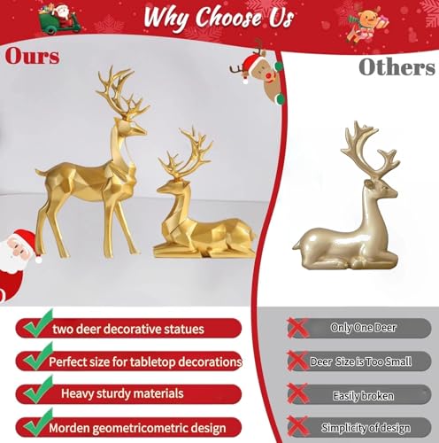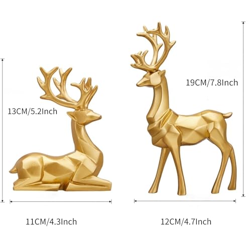 Butyhouse - طقم تماثيل مجسمة للكريسماس بتصميم غزال الرنة الكبير جالسة وواقفة من الراتنج من بوتي هاوس، زينة عصرية للمنزل وغرفة المعيشة وغرفة النوم والمكتب ومكتبة التلفزيون، عبوة من قطعتين لون ذهبي، مقاس 19 سم