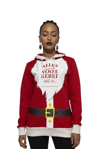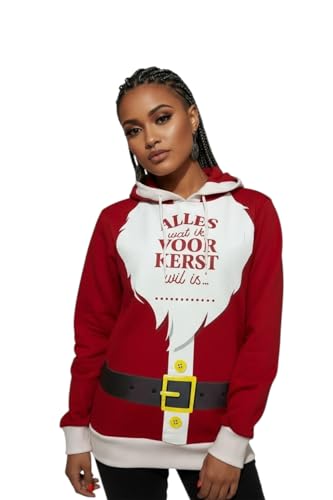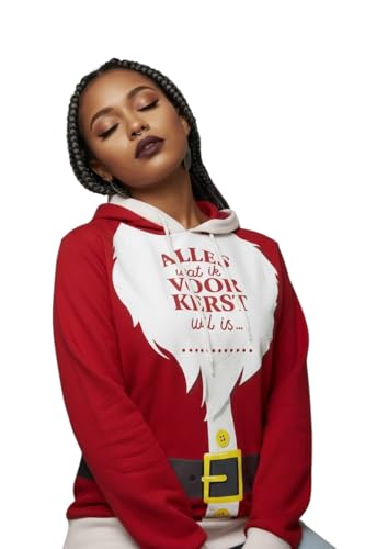 Generic - Christmas Santa Claus Hooded Sweatshirt, Red and White Border Bright Front Print Print Sweatshirt with Dutch Text Size L
