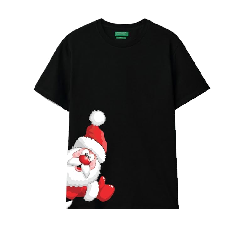 Generic - Christmas Santa T-Shirt, Black Cotton Short Sleeve, Holiday Theme Graphic Print Size (3-6Y)