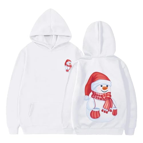 Generic - هودي كريسماس سنومان، مزيج من القطن الابيض مع جيب امامي، طباعة جرافيك بطابع عطلة الشتاء مقاس (M)