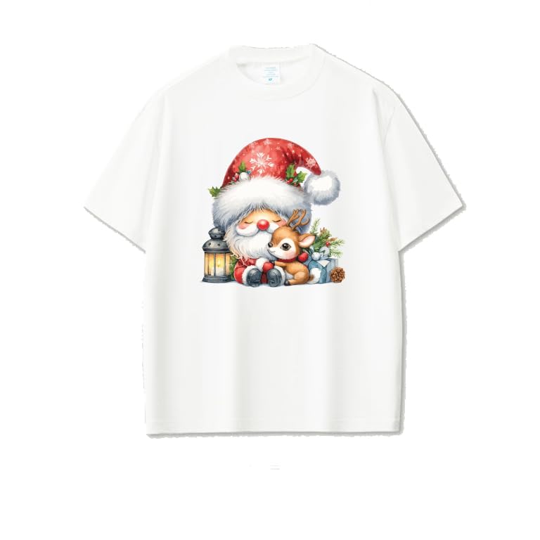 Generic - Christmas T-Shirt with Cute Holiday Design, White Cotton Tee, Festive Winter Print with Lantern and Reindeer Size (3-6Y)