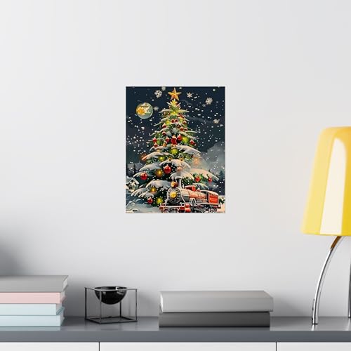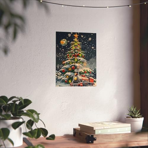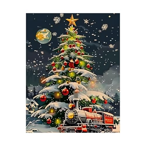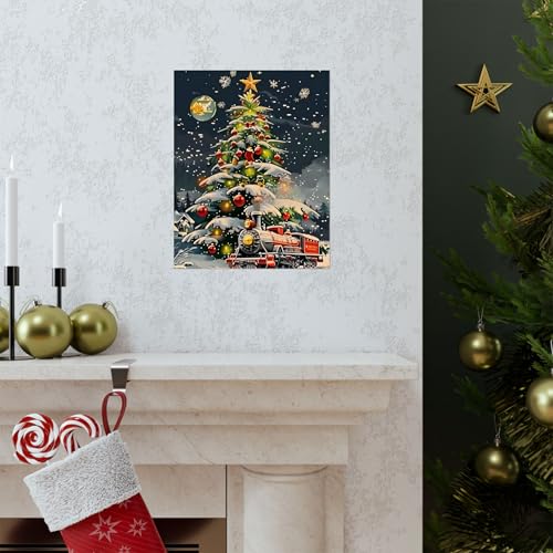 Generic - ملصق حائط معدني بتصميم شجرة الكريسماس مع قطار - لافتة جدارية سحرية لليلة الشتاء-47
