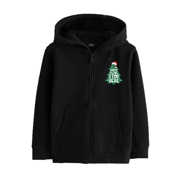 Generic - Christmas Zip-Up Hoodie, Black Cotton Sweatshirt with Santa Please Stop Here Design, Festive Winter Pullover(2XL)