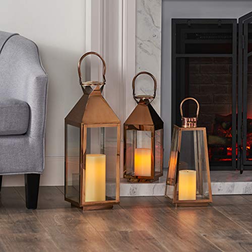 Christopher Knight Home - Christopher Knight Home Qahira Stainless Steel Lantern Set, Rose Gold