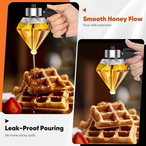 - 【Efficient Bottom-Flow Design】 The improved bottom-flow honey dispenser eliminates waiting time—simply remove the stopper, press the trigger, and pour honey or syrup instantly. Includes a sturdy bottom stand for stability. Note: Not suitable for solid honey.