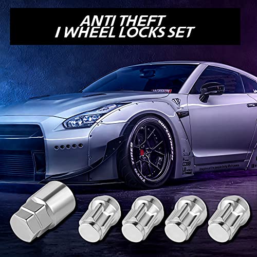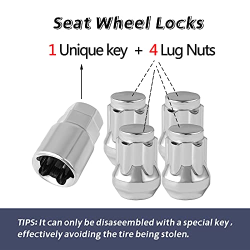 XUYUAN - Chrome Cone Seat Wheel Lock M14 x 1.5 Thread Size Premium Highly Safe Anti-Theft Wheel Lock Set with Wheel Lock Key Wheel Lock Lug Nuts Accessories (14x1.5MM)