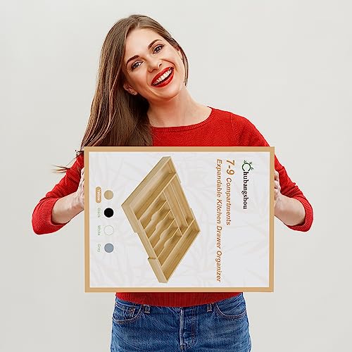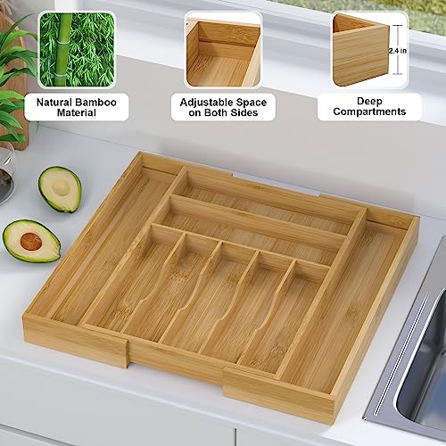 Chubangshou - Silverware Drawer Organizer with Dividers, Premium Bamboo Utensil Organizer Expandable Silverware Tray for Drawer (Natural)