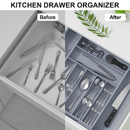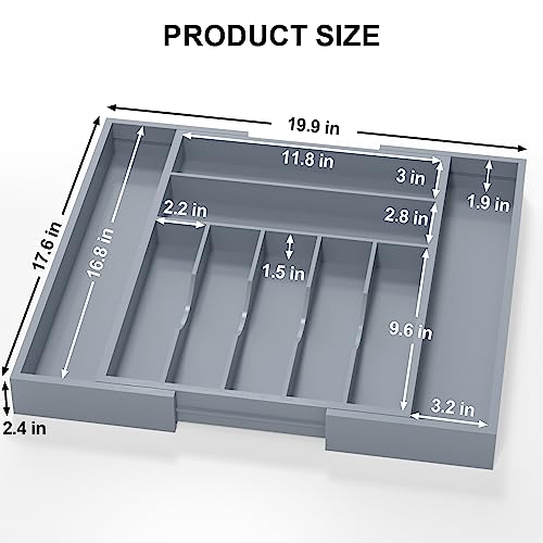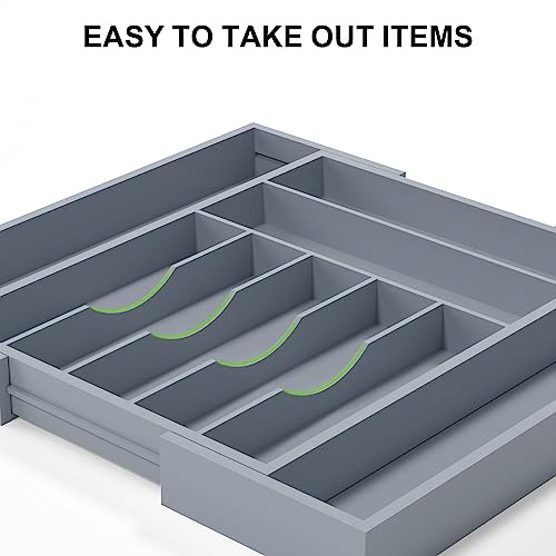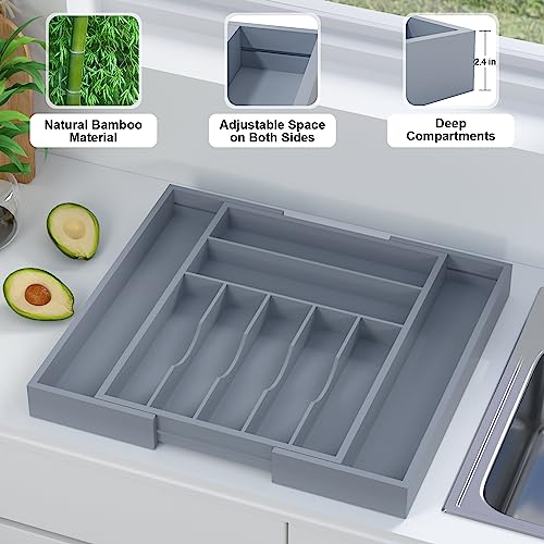 Chubangshou - منظم أدوات المائدة الفضية، منظم أدوات تناول الطعام قابل للتعديل من البامبو لتنظيم أدوات المطبخ والأواني والسكاكين من تشوبانجشو (رمادي)