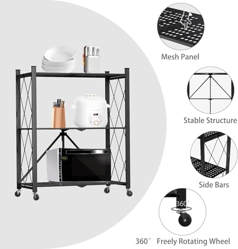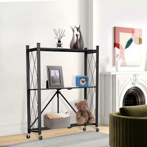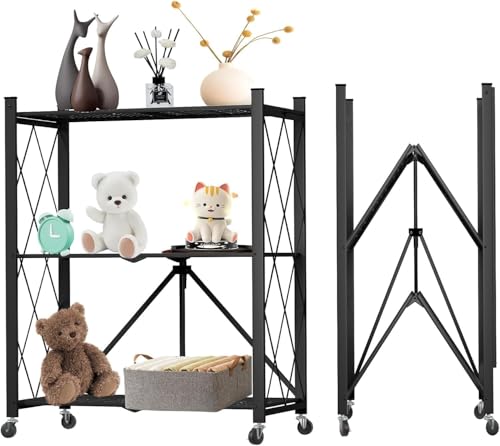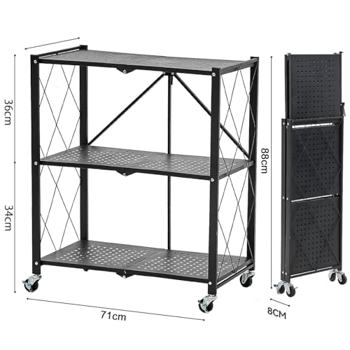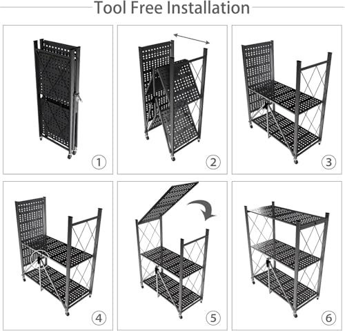 - 【Instant Mobility Rack】This pre-built shelf features a seamless setup in mere seconds, ensuring effortless installation. Move around smoothly with its 4 wheels and fold it for compact storage when not in use.