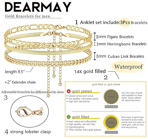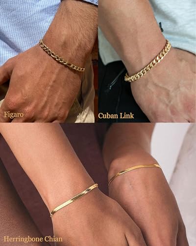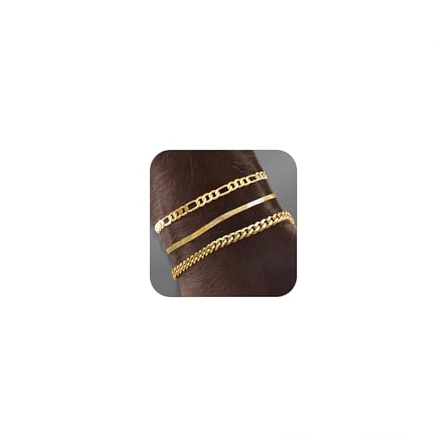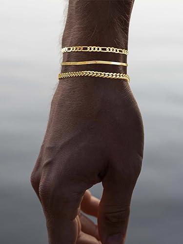 generic - Chunky Gold Bracelets for Men Cuban Link Figaro Herringbone Chain Bracelet Set Waterproof Bracelets Trendy Non Tarnish Fashion Stackable Layered Bracelets Pack 14K 18K Gold Jewelry Gift