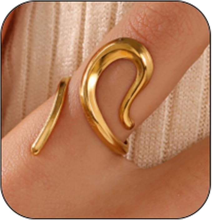 Generic - Chunky Rings For Women, Thumb Ring Asymmetrical Wavy Curve Ring Serpentine Rings Adjustable Non Tarnish Dainty Stainless Steel New Year Anniversary Birthday Jewelry Gifts