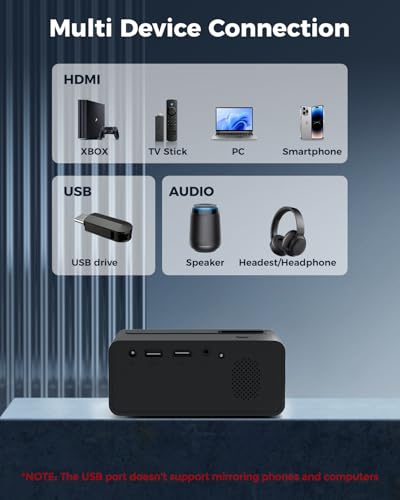 - اتصال أجهزة متعددة وتطبيق واسع مزود بواجهات إتش دي إم ي وUSB وايه في، يعمل جهاز عرض الأفلام بشكل مثالي مع موبايلات آيفون/ أندرويد، التابلت/ الاي باد، اللاب توب، ماك بوك، مشغل بلو راي، تي في بوكس، بلاي ستيشن 4، أقراص فلاش USB، إلخ. يمكن استخدامه في المسارح المنزلية وألعاب الفيديو والحفلات والأنشطة الخارجية. ☛(ملاحظة: نظرًا لحقوق الطبع والنشر اتش دي سي بي، فإن جهاز العرض هذا غير متوافق مع نتفليكس وأمازون برايم وهولو، ولكن يمكنك استخدام أمازون فاير ستيك أو روكو ستيك).