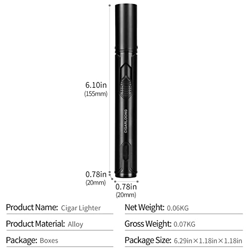CIGARLOONG - CIGARLOONG Torch Lighter Single Flame Butane Refillable Lighter for Candle BBQ Camping Cooking(Black)