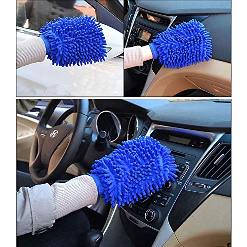 CINY - CINY Microfiber Mitt, Cleaning Gloves Car Dual-sided Wash Mitt (2-Pack) Noodle Microfiber Wash Gloves Cleaning Microfiber Mitt With Non-Slip Elastic Cuff For Car Cleaning & Household Cleaning, Blue
